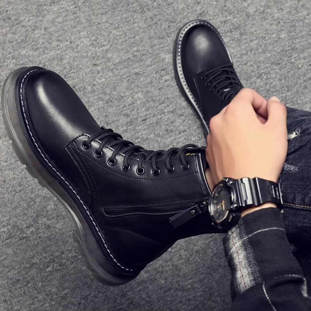 シンプルながらもタフなデザインが魅力。サイドジップが付いているため、脱ぎ履きも楽にできます。